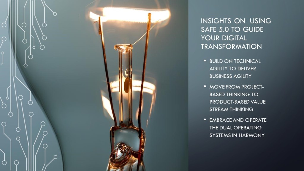 SAFe 5.0 was a big release of SAFe, and responding to the demands of companies undergoing digital transformation, business agility is front and centre of SAFe 5.0. Dean Lefingwell’s conversation with Mik Kersten on the Project to Product podcast provides helpful insights for folks using SAFe or another scaling framework or even their homegrown framework to guide their company’s digital transformation. Here are my takeaways from that conversation on how you can use those insights to guide your digital transformation.